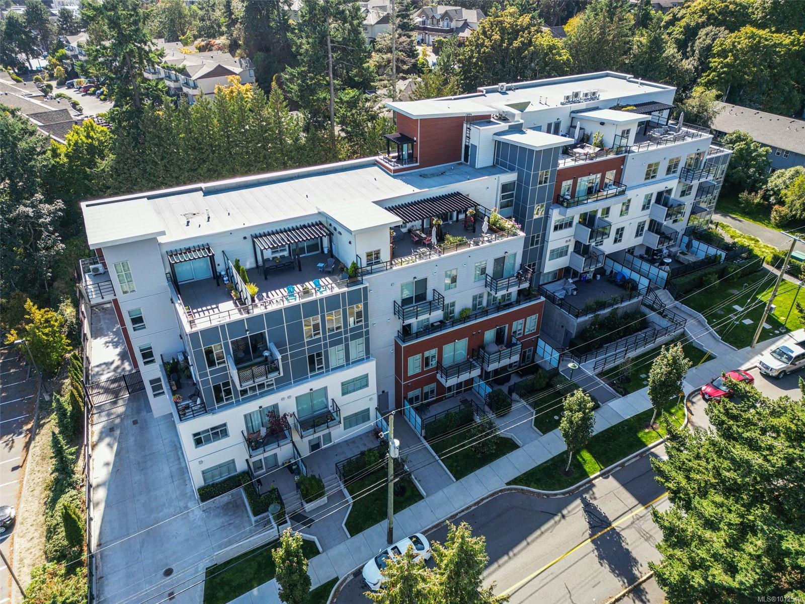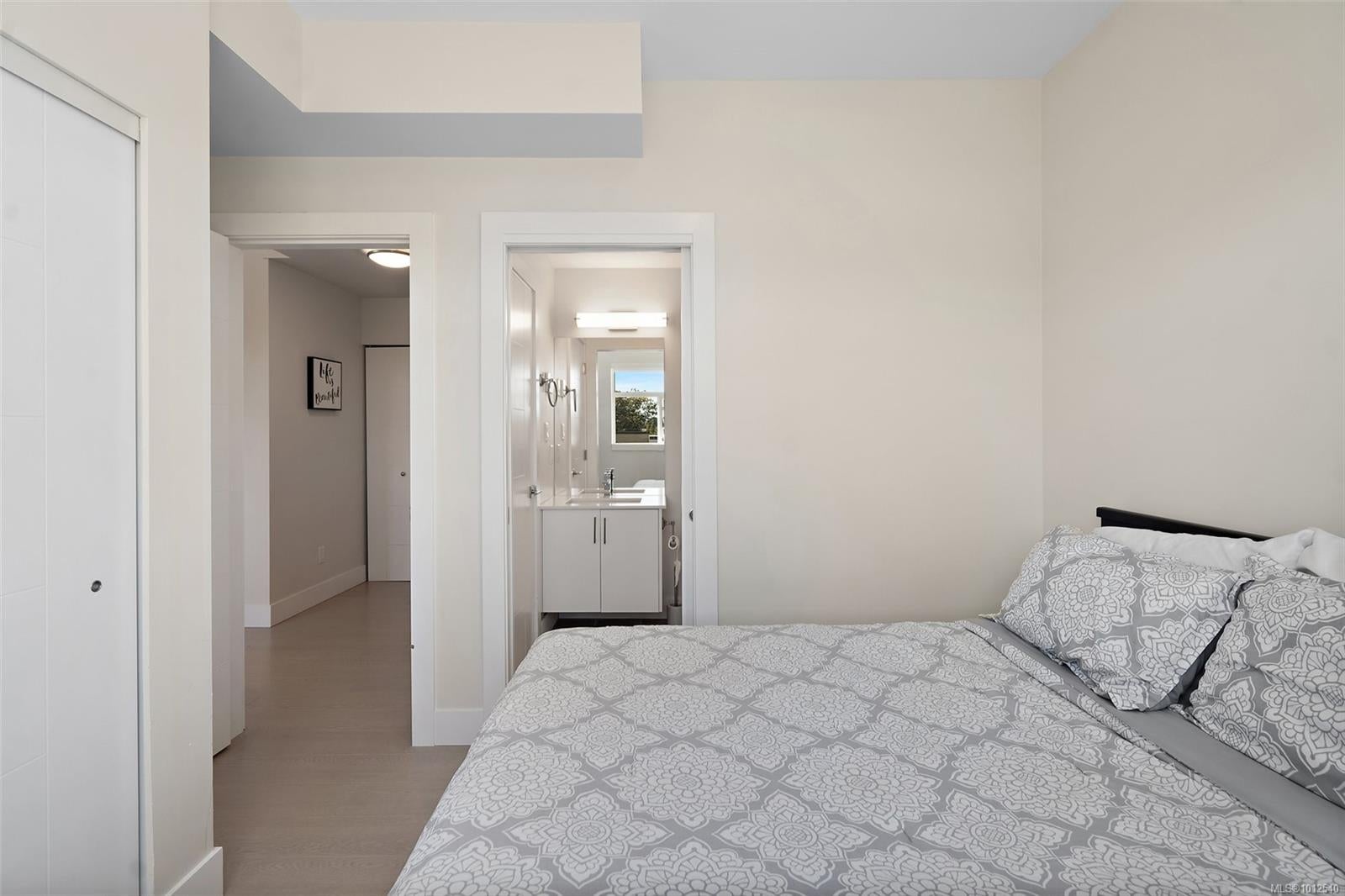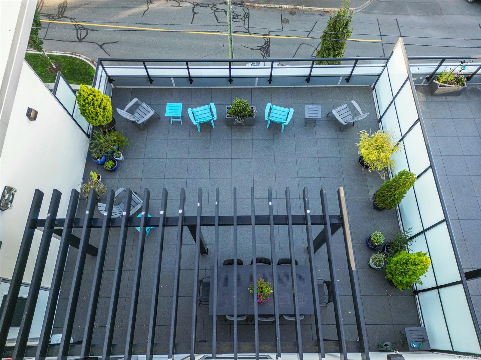 Welcome to The Glenn—a stunning, like-new 2 bedroom, 2 bath corner unit condo located in one of the most convenient and walkable areas of View Royal. Built in 2021 and still under the developer’s warranty, this gorgeous, sun-filled unit features 9’ ceilings, roller shades and NuHeat flooring and both bedrooms have attached baths. The open-concept layout offers seamless flow and modern style, and the unit can even be sold fully furnished—just move right in! Enjoy exceptional building amenities including: Spacious common patio with ample seating and water views, electric vehicle charging in the secure underground parking, bike & kayak storage, plus bike/dog washing station & separate storage. Step outside and you're just minutes from groceries, restaurants, shopping, the E&N Rail Trail, Portage Park, and the scenic Gorge Waterway. Pet lovers will appreciate the strata’s generous policy: 2 pets allowed with no size restrictions.