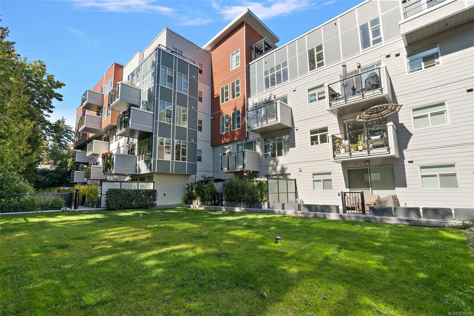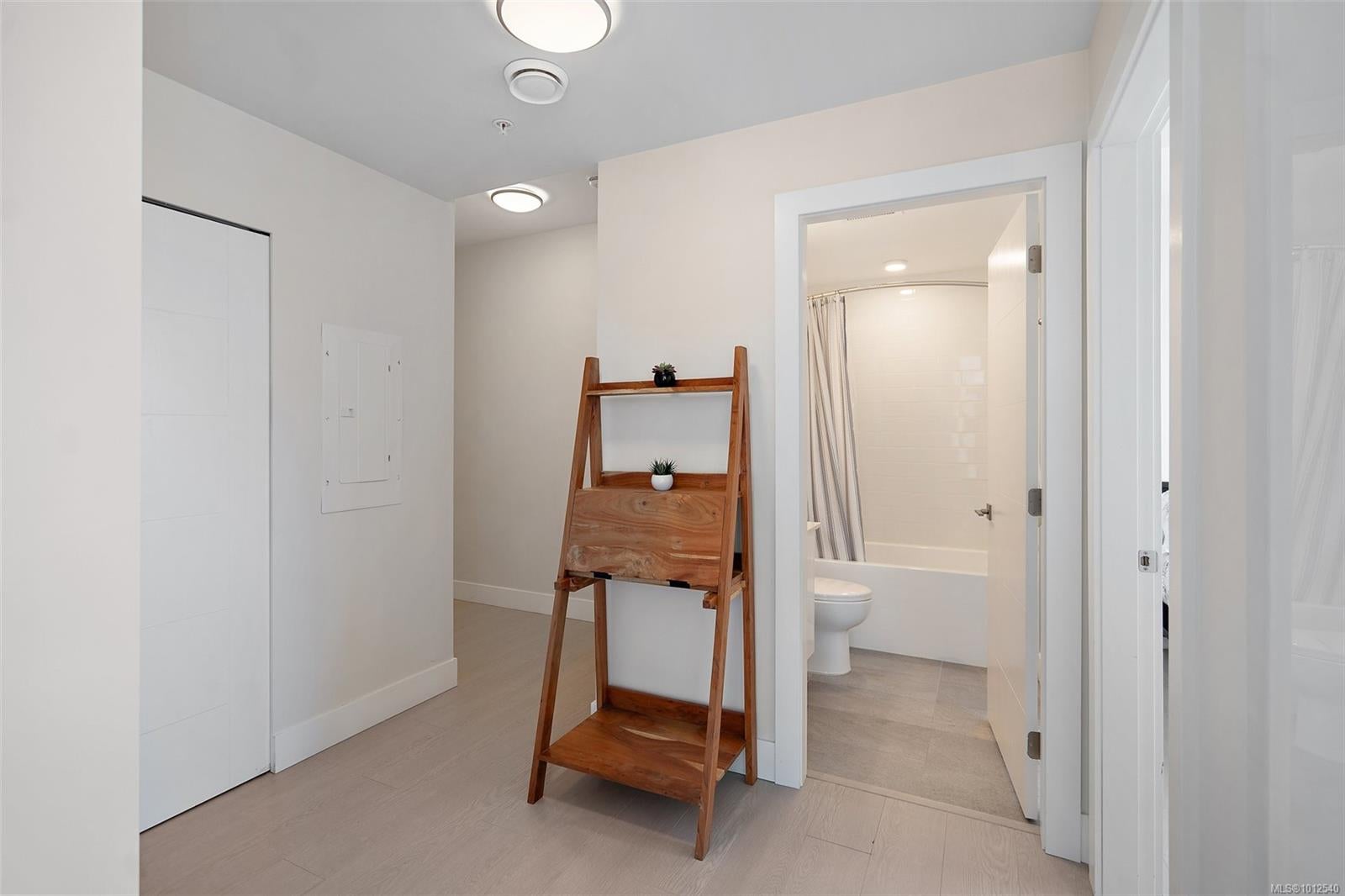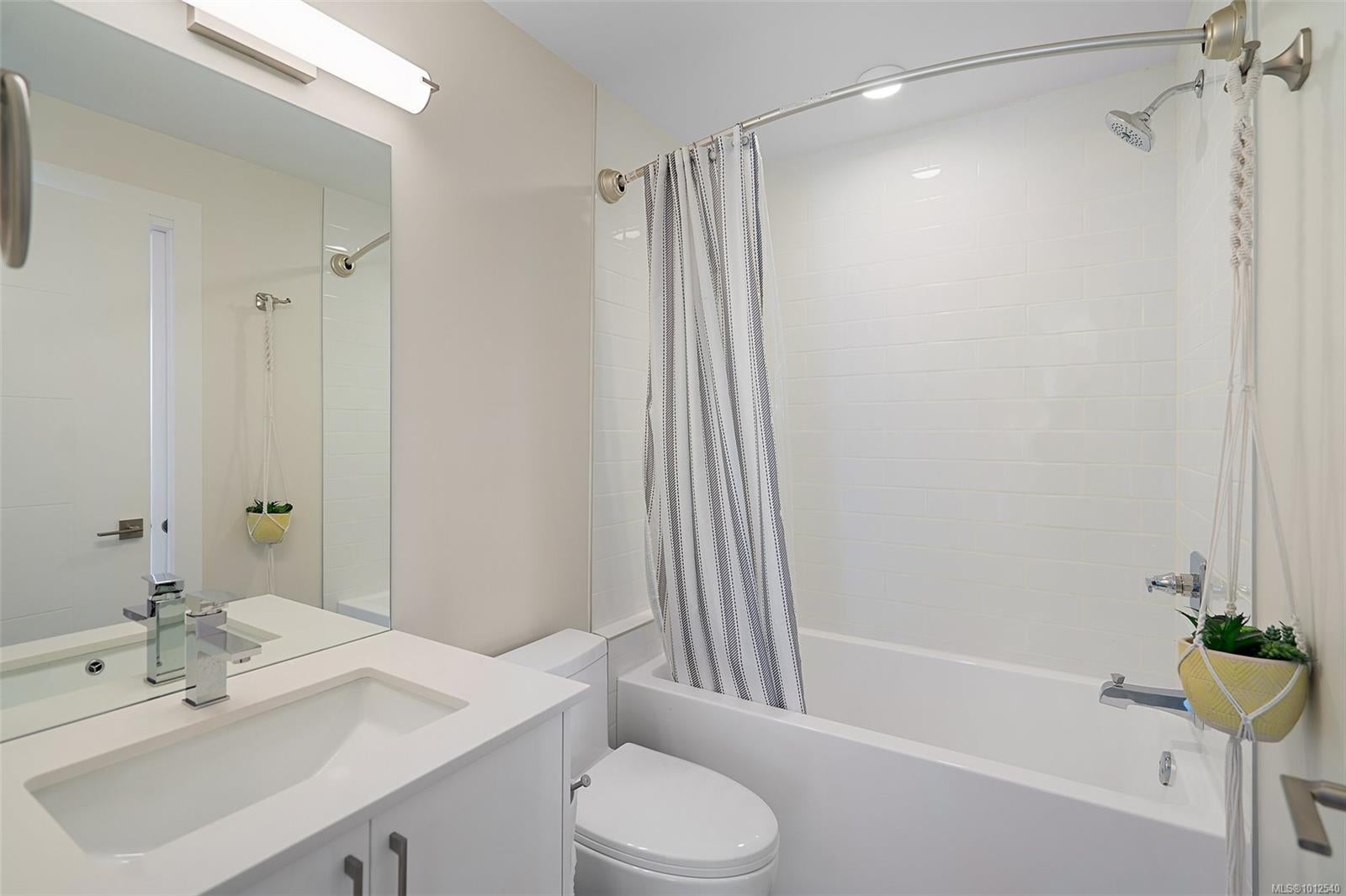 Welcome to The Glenn—a stunning, like-new 2 bedroom, 2 bath corner unit condo located in one of the most convenient and walkable areas of View Royal. Built in 2021 and still under the developer’s warranty, this gorgeous, sun-filled unit features 9’ ceilings, roller shades and NuHeat flooring and both bedrooms have attached baths. The open-concept layout offers seamless flow and modern style, and the unit can even be sold fully furnished—just move right in! Enjoy exceptional building amenities including: Spacious common patio with ample seating and water views, electric vehicle charging in the secure underground parking, bike & kayak storage, plus bike/dog washing station & separate storage. Step outside and you're just minutes from groceries, restaurants, shopping, the E&N Rail Trail, Portage Park, and the scenic Gorge Waterway. Pet lovers will appreciate the strata’s generous policy: 2 pets allowed with no size restrictions.