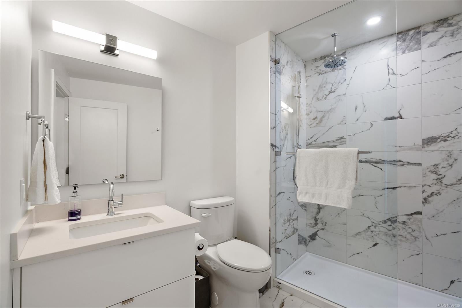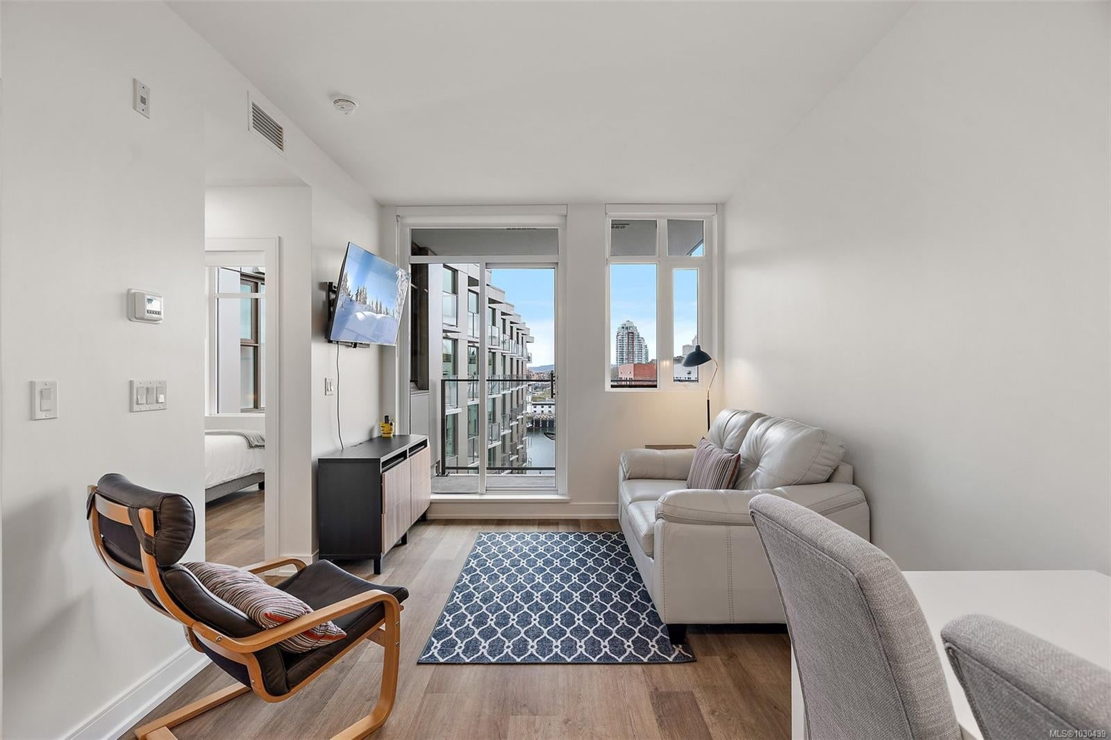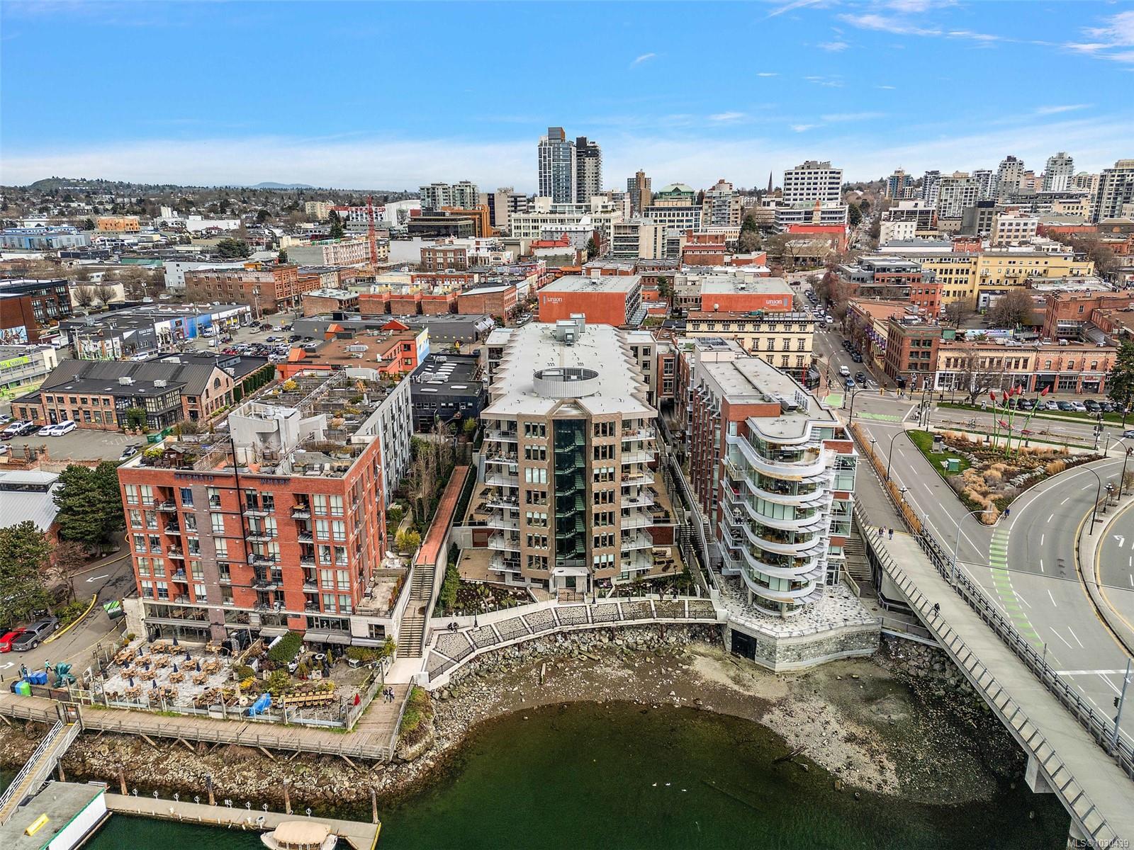 Looking for the best value harbour view condo in Victoria? Priced well below assessed value, offering an exceptional opportunity in a near new home! Welcome to The Pearl, a boutique residence in the heart of Old Town District. This stunning 8th-floor end unit with water views and no unit above, means you have only one neighbour. This bright, contemporary condo features 9ft ceilings, high-end finishes, a chef’s kitchen with quartz counters & stainless steel appliances, plus in-suite laundry and efficient heat pump with A/C. Enjoy sunsets from your spacious patio. Pet-friendly with no size restrictions, secure parking, separate storage, gym & resident lounge. This condo offers tons of desirability in the best downtown location in Victoria. Walk Score of 97 offers steps to dining, shops & waterfront walkways. Can be sold fully furnished— turn key & move-in ready.